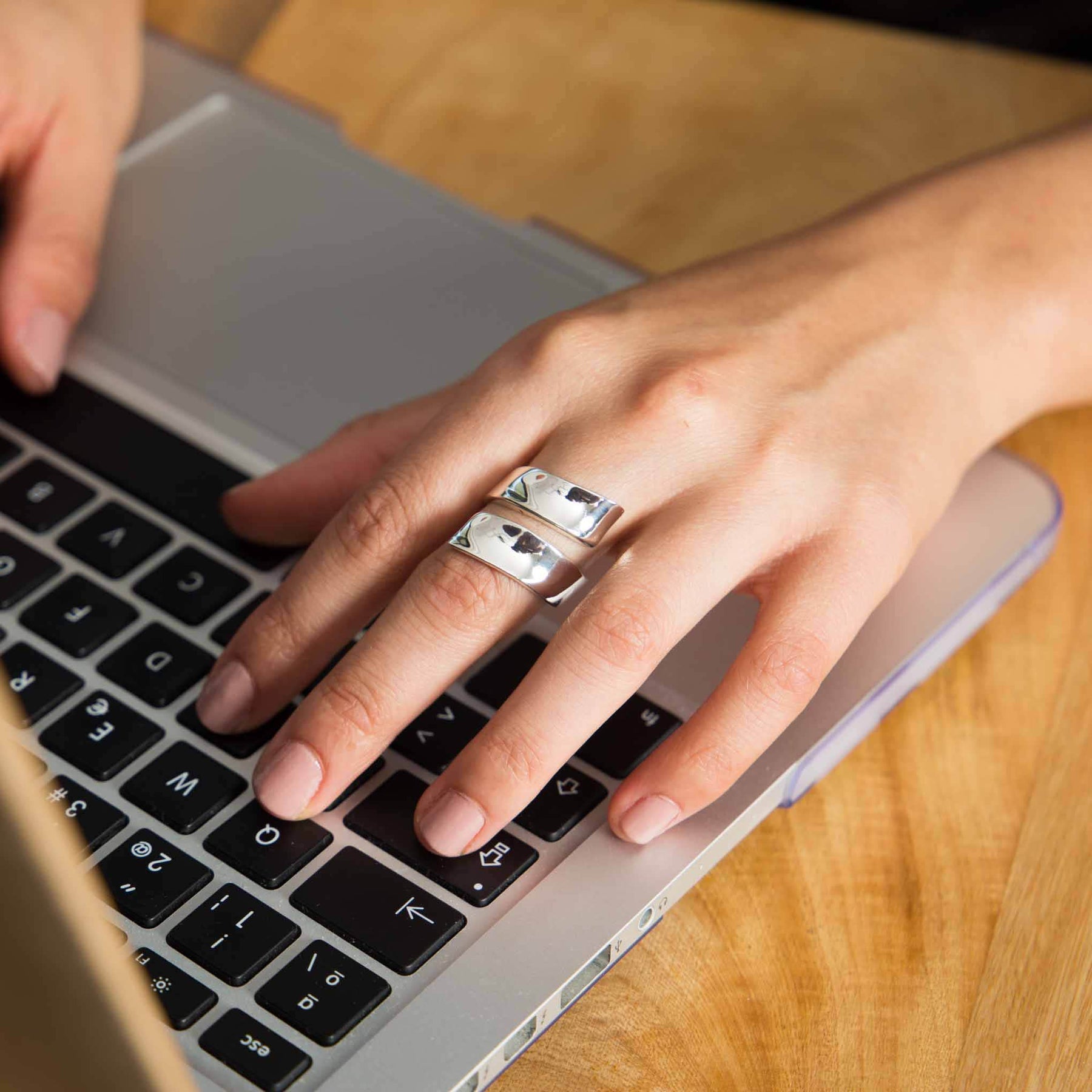 Anillo de plata .925 liso de figura cóncava que lo hace lucir con mucho brillo, es ideal para lucir casual o incluso en una reunión formal. Ajustable para utilizarlo en cualquier dedo de tu preferencia. Un diseño que se mantendrá vigente.