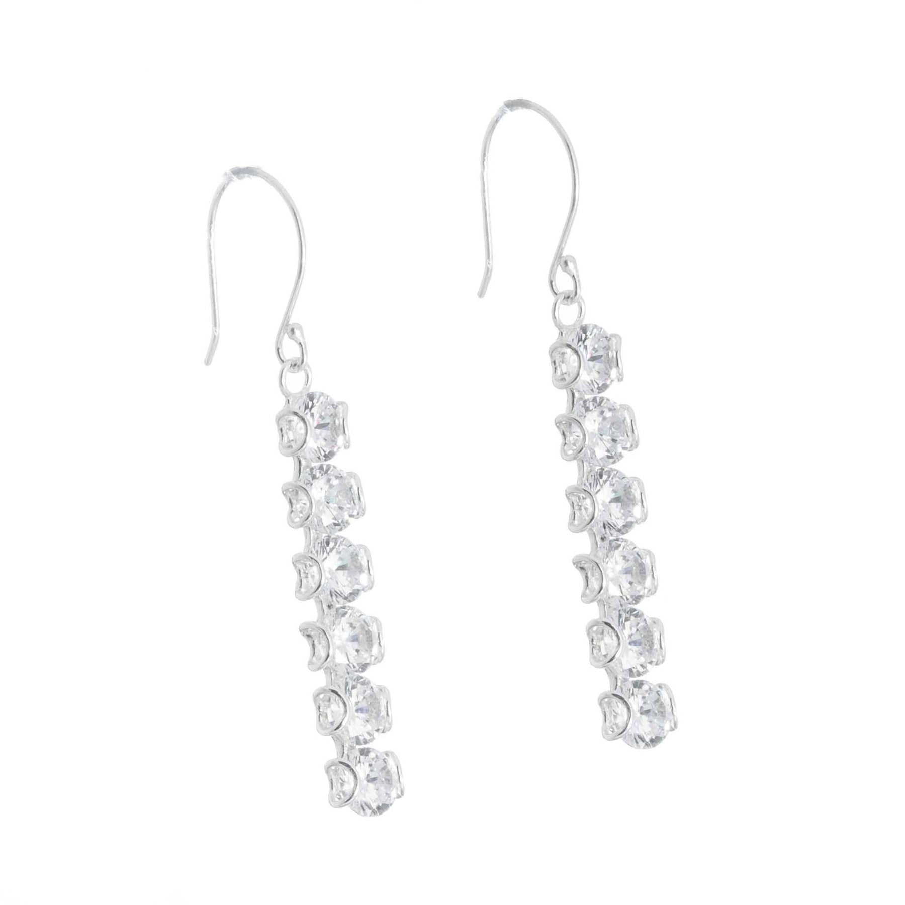 Un brillante par de aretes de gancho que con un entrecruzado de plata sostiene 6 brillantes zirconias, haciéndolos lucir extremadamente elegantes, van perfecto para eventos formales, con tu mejor vestido a la luz de la luna.