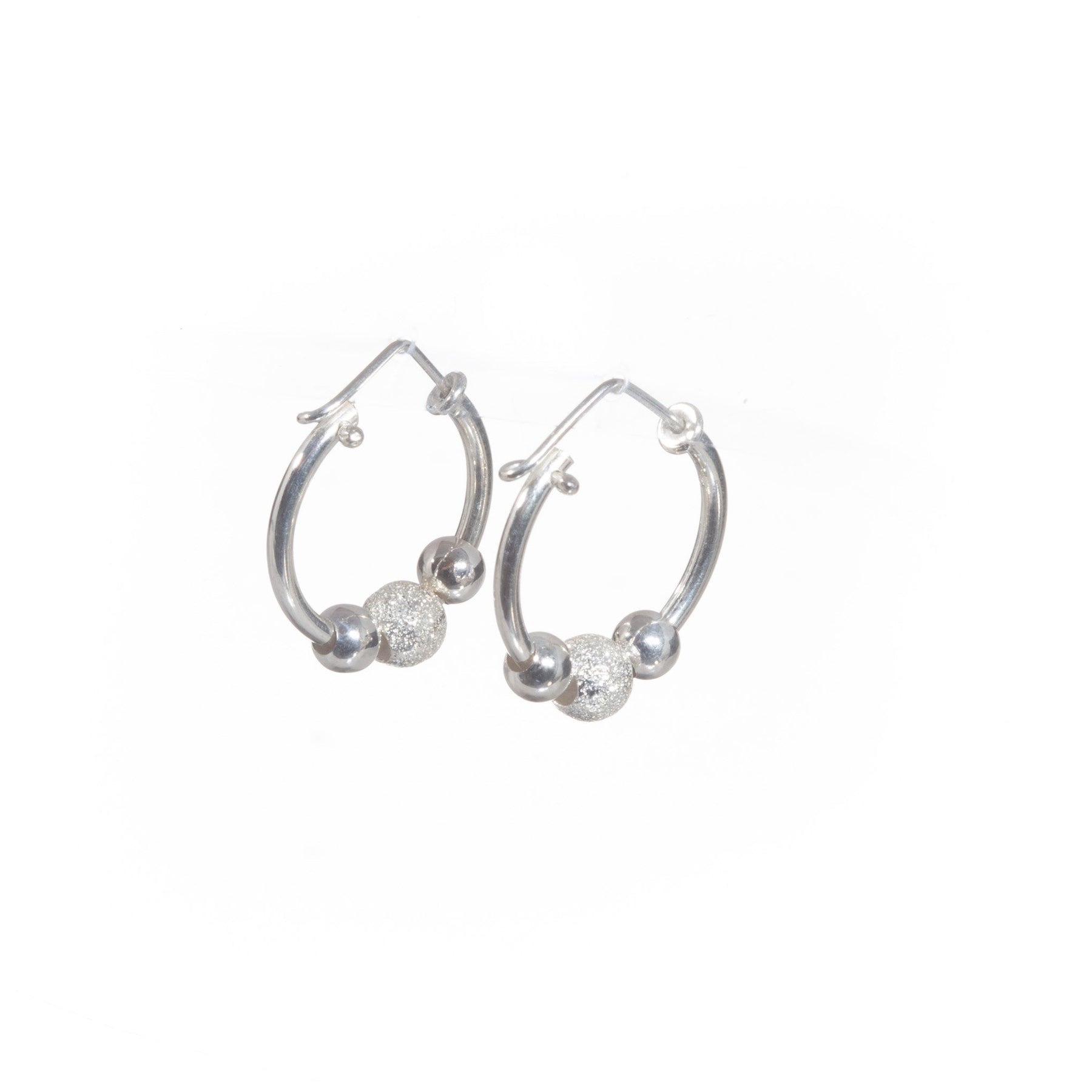 Fina y elegante arracada ideal de aro acompañada de tres esferas siendo la que más destaca por su acabado diamantado que no podrá pasar desapercibida por nadie. elaborada de plata .925 lo hace el accesorio ideal para resaltar tu seguridad y belleza. Además cuenta con broche de presión para evitar se caiga en momentos inesperados.