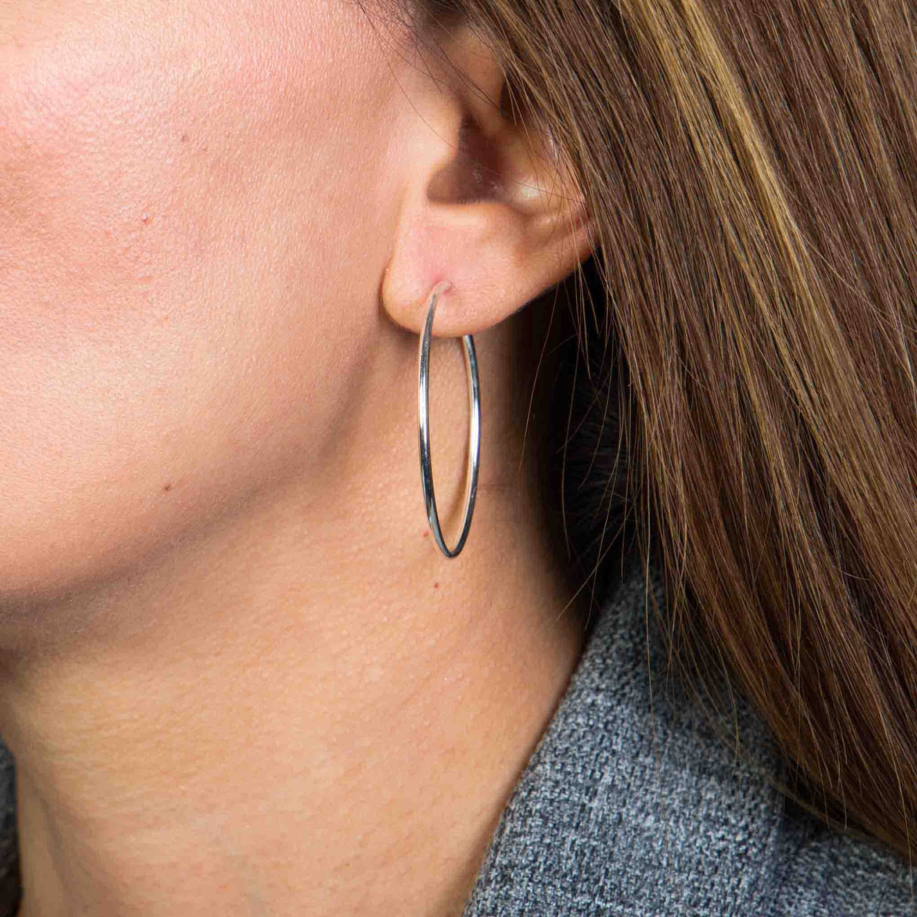 Un par de arracadas de un tamaño chico que están hechas de Plata ley .925, su forma discreta hacen que sea combinable con todo tipo de prendas sin importar los colores, además de que son cómodas ya que el poste se oculta dentro del aro ¡no tendrás que preocuparte de lastimarte!.