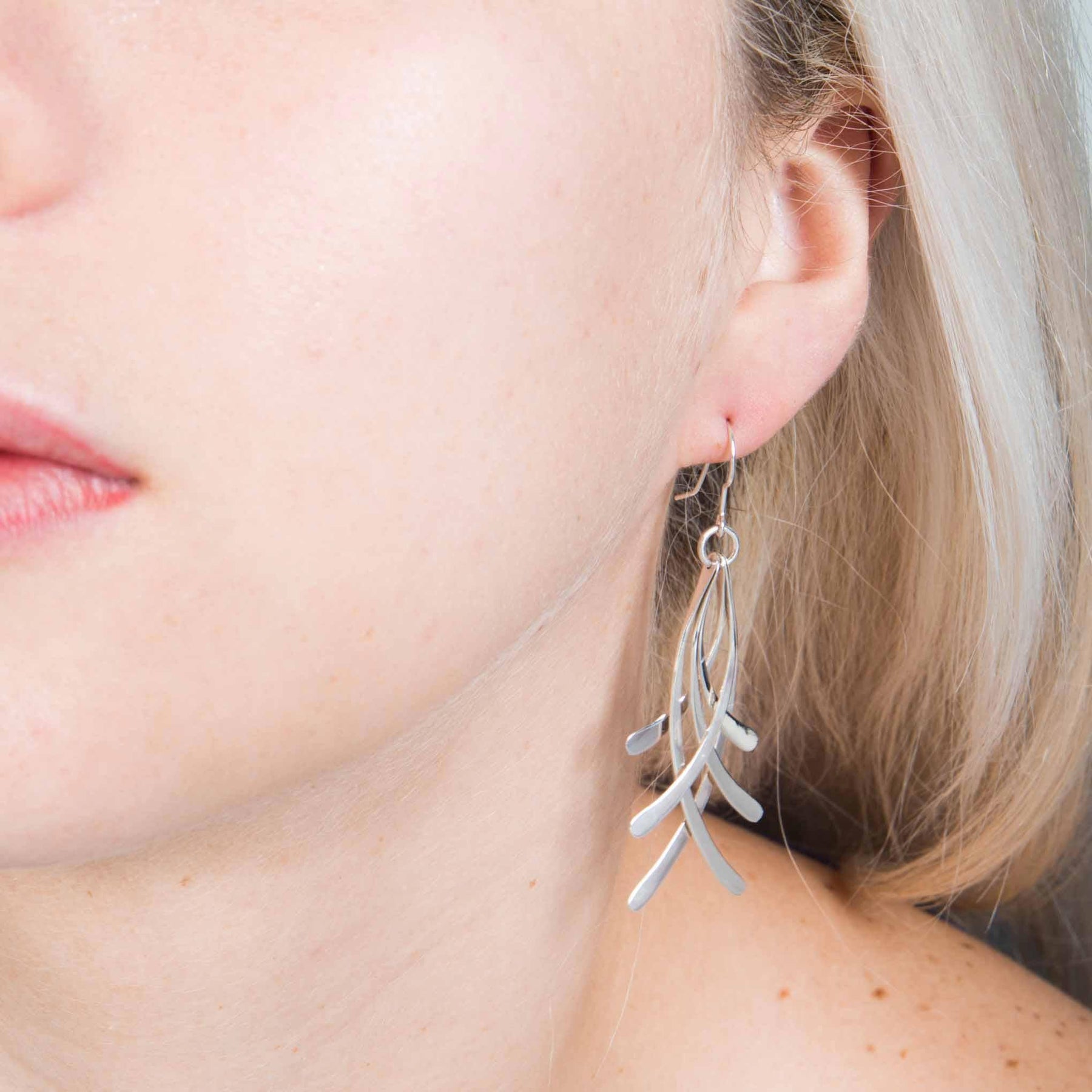 Aretes de plata ley .925 Tiras largas. Con innovador diseño de tiras en movimiento con diferentes largos los hacen leal en momentos formales a la luz del día.