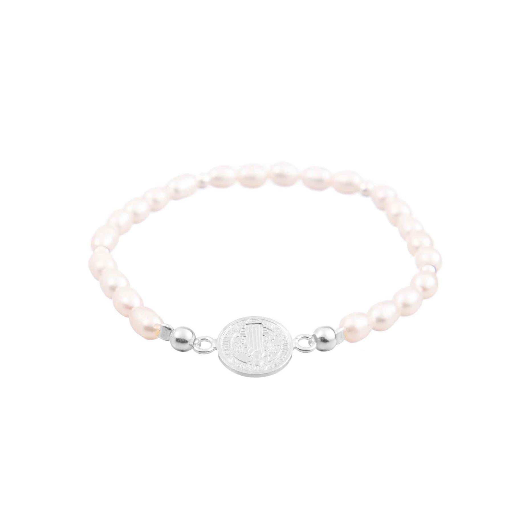 Pulsera de perlas con dije San Benito de plata de plata mexicana