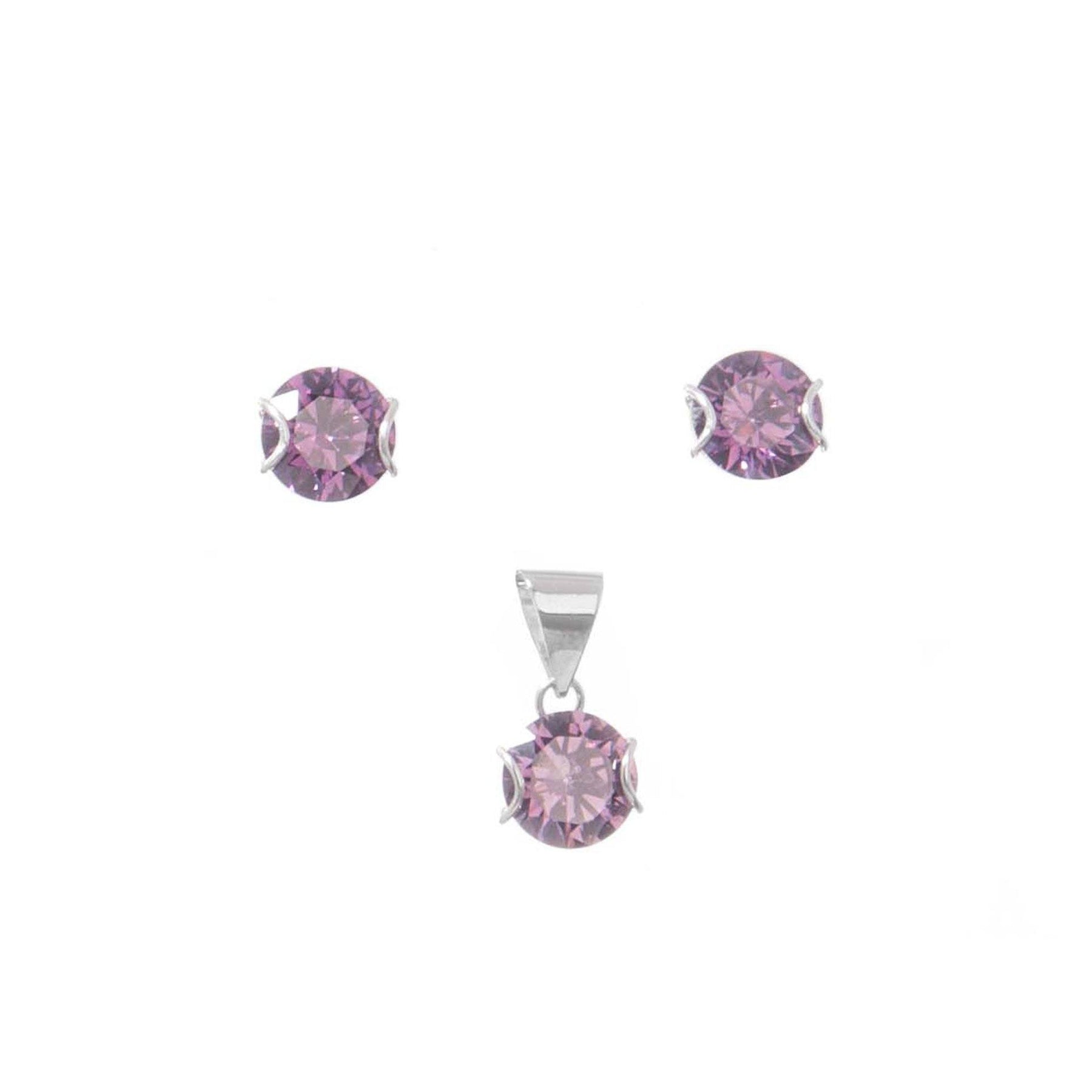 Un juego fino de plata .925 que incorpora en su diseño zirconias de un tamaño considerable, de tal forma dónde la plata actúa como un sujetador con unas pequeñas extensiones que parecen abrazar la piedra, puedes usar este juego en tus reuniones formales y también con un vestido elegante.