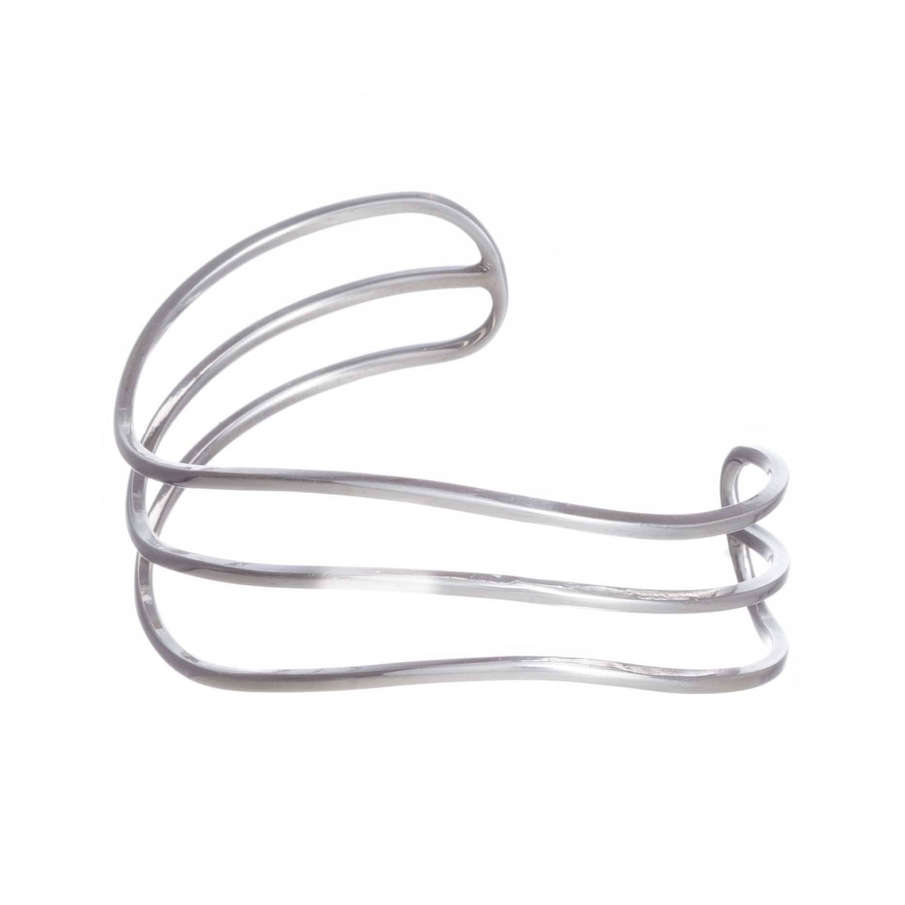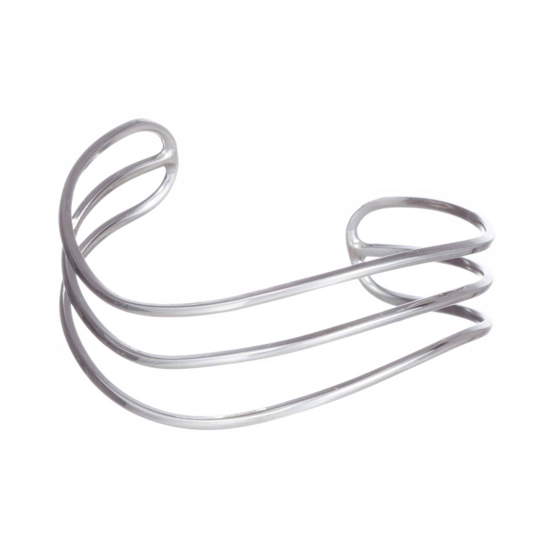 Este brazalete hecho en su totalidad de Plata ley .925 es llamativo a simple vista por sus cualidades como su brillo, su ligereza, así como por su diseño minimalista ya que este brazalete se compone de tan solo tres lineas, que le otorgan un toque elegante, es perfecto para usar con todo tipo de ropa ya sea casual o formal.