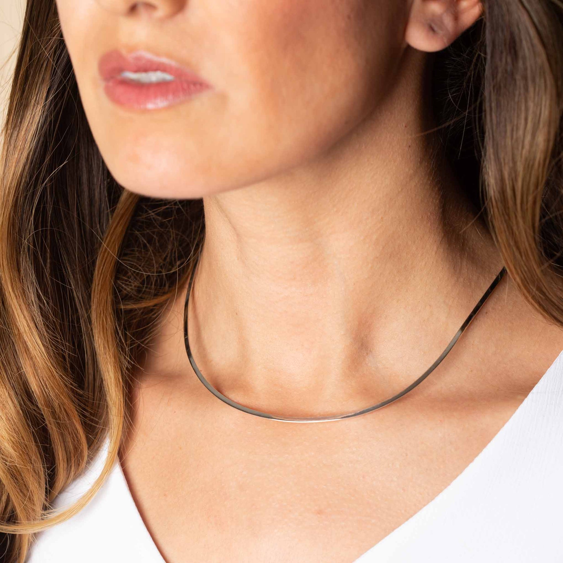 Gargantilla elaborada en Plata ley .925, además de ser elegante, fina y resaltará y acentuará las cualidades propias de tu cuello.